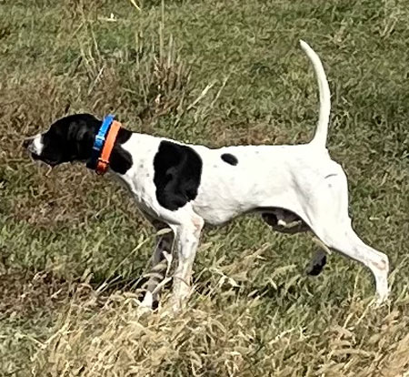 another dogs point. She has been hunted with a beeper collar. She has